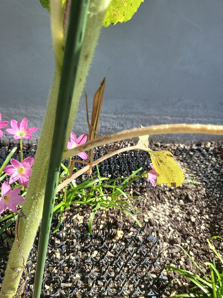 相変わらずここにいました。(笑) よく見えなかったですが、まだ脱皮はしてないかな。。。